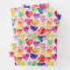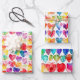 Adorable Regenbogenherzen verpacken Papier in Aquarellfarbe, das Freude auslöst. Drei verschiedene Designs für einzigartige Geschenkverpackungen.