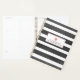 Ein Lehrer-Planer mit einem dunkelgrauen Stripmuster mit rosa Akzenten inklusive Apfel in der Mitte. Personalisieren Sie den Text vorne.