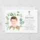 Trendy Jasmine, Eukalyptus, Efeu und Farne wilde Waldtaufe oder taufende Einladungskarten, die schnell und einfach auf Ihre Bedürfnisse zugeschnitten sind. Es wird ein quadratisches Foto empfohlen.