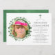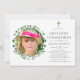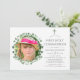 Trendy Wildwaldwald Grüne Taufe oder Weihnachts Einladungskarte, die schnell und einfach auf Ihre Bedürfnisse zugeschnitten ist. Es wird ein quadratisches Foto empfohlen.