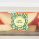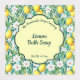 Ein Etikett für Seife- und Badeprodukte mit einem Hintergrund aus Zitronen und weißen Blume. Passen Sie es mit Ihren Produkt- und Geschäftsinformationen an.