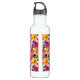 Diese Wasserflasche wird mit einem tropischen Blumendruck gezeigt. Passen Sie dieses Objekt an oder kaufen Sie es wie gezeigt. Lizenzierte Printwerbung