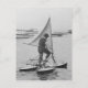 Ein Mann segelt und paddelt sein Wassertrirad durch den Hafen, um einen Abhang in diesem undatierten Vintagen Foto zu erreichen.