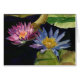 Schöne und farbenfrohe Aquarellfarben, die auf Shirts und Geschenken großartig aussehen! Hübsches Rosa und blaues Wasser lilisiert Pop auf einem dunklen lila Hintergrund. Warmes und tropisches Blumendesign.
