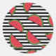 Wassermelone auf Schwarz-Weiß-Streifen Muster Runder Aufkleber
