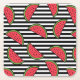 Wassermelonesommermuster mit flachen einfachen Scheiben der Wassermelone auf einem gestreiften Hintergrund. | © und ® Bigstock® - alle Rechte vorbehalten.