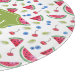 Dieses Schnittboard zeichnet sich durch ein Fruchtmuster mit einem individuellen Etikett aus.
