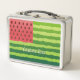 Rote und grüne Wassermelonenflagge mit Streifen und Samen. Benutzerdefinierter Text auf beiden Seiten.