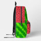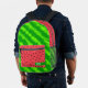 Dieser hübsche Wassermelone-Rucksack hat ein Melonobst-Design, das aussieht, als wäre er geschnitten worden. Das saftig rosa Fruchtfleisch der Melone zeigt sich also auf der Tasche und oben, komplett mit schwarzen Wassermelonensamen. Die Vorderseite und die Seiten beinhalten die gesprenkelte grüne, gepolsterte Rinde. Dies ist ein niedliches, skurriles Sommerzeitdesign mit allen Originalwerken. Verwenden Sie die einfache Vorlage, um Ihr Monogramm zur vorderen Hosentasche hinzuzufügen. Weitere lustige Rucksäcke und andere kundenspezifische Produkte finden Sie im FancyCelebration Store: https://www.zazzle.com/store/fancycelebration