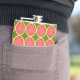 Design mit einer Retro-Touch inspiriert von einer Wassermelone mit einem rosa Kreis und Samenmuster auf einem dunkelgrünen Hintergrund. Ein individuell anpassbares Design für Sie, um mit Ihrem eigenen Text, Bildern und Ideen zu personalisieren. Ein originelles digitales Kunstbild.
