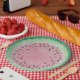Wassermelone-rosa u. grünes handgemaltes Aquarell Pappteller