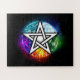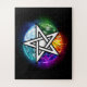 Künstlich gezeichnet, leuchtendes Pentagramm mit fünf magischen Elementen, Wasser, Erde, Feuer, Astral, Luft auf schwarzem Hintergrund. Wiccan Pentagram. Wicca