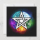 Künstlich gezeichnet, leuchtendes Pentagramm mit fünf magischen Elementen, Wasser, Erde, Feuer, Astral, Luft auf schwarzem Hintergrund. Wiccan Pentagram. Wicca
