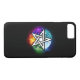 Künstlich gezeichnet, leuchtendes Pentagramm mit fünf magischen Elementen, Wasser, Erde, Feuer, Astral, Luft auf schwarzem Hintergrund. Wiccan Pentagram. Wicca