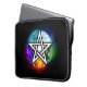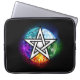 Künstlich gezeichnet, leuchtendes Pentagramm mit fünf magischen Elementen, Wasser, Erde, Feuer, Astral, Luft auf schwarzem Hintergrund. Wiccan Pentagram. Wicca