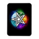 Künstlich gezeichnet, leuchtendes Pentagramm mit fünf magischen Elementen, Wasser, Erde, Feuer, Astral, Luft auf schwarzem Hintergrund. Wiccan Pentagram. Wicca