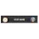 Namensplakette mit Uhr