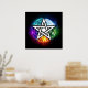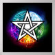 Künstlich gezeichnet, leuchtendes Pentagramm mit fünf magischen Elementen, Wasser, Erde, Feuer, Astral, Luft auf schwarzem Hintergrund. Wiccan Pentagram. Wicca