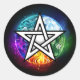Künstlich gezeichnet, leuchtendes Pentagramm mit fünf magischen Elementen, Wasser, Erde, Feuer, Astral, Luft auf schwarzem Hintergrund. Wiccan Pentagram. Wicca
