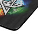 Künstlich gezeichnet, leuchtendes Pentagramm mit fünf magischen Elementen, Wasser, Erde, Feuer, Astral, Luft auf schwarzem Hintergrund. Wiccan Pentagram. Wicca