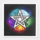 Künstlich gezeichnet, leuchtendes Pentagramm mit fünf magischen Elementen, Wasser, Erde, Feuer, Astral, Luft auf schwarzem Hintergrund. Wiccan Pentagram. Wicca