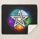 Künstlich gezeichnet, leuchtendes Pentagramm mit fünf magischen Elementen, Wasser, Erde, Feuer, Astral, Luft auf schwarzem Hintergrund. Wiccan Pentagram. Wicca