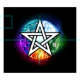 Künstlich gezeichnet, leuchtendes Pentagramm mit fünf magischen Elementen, Wasser, Erde, Feuer, Astral, Luft auf schwarzem Hintergrund. Wiccan Pentagram. Wicca