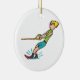 Wasserski-Design zeigt Skifahrer auf dem Single Wasserski, der durch das Wasser schneidet. Lehnt in Seil ab, trägt Skiausrüstung und Schattierungen, das Haar bläst mit der Geschwindigkeit des Windes. Spaß hell und originell für Wasserläufer und Fans.