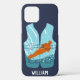 Erschaffen Sie ein personalisiertes Geschenk, das sich perfekt für Wasserskiläufer und Wassersportler eignet. Dieses Handy-Gehäuse zeigt einen Wasserläufer in orangefarbenem, hellblauem und aquamarin blauem Set in Form einer Schwimmweste vor einem marineblauen Hintergrund. Unten ist ein Platz, um einen Namen in weißen Buchstaben hinzuzufügen.