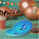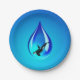 Teller mit Orcafalf schwimmen in einem Tropfen Wasser.