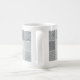 Quadratische Platten der gelegten Punktraster von Schwarzem und von Grau schaffen Wässerungsmuster, die diese Tasse umkreisen.