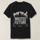 "Wasted Future" appears in sharp, industrial typography with a scattered, grainy texture. The pattern creates a strong ecological message in a minimalist poster aesthetic.