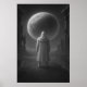 A mysterious cloaked figure stands before a massive moon in a haunting, dreamlike landscape. This dramatic dark-fantasy artwork adds depth, atmosphere, and storytelling to any wall space.