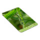 Dew drops play on a green grass slide in this lush, peaceful, nature meditation magnet.
