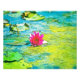 Eine fuchsienartige Wasserlilie mit kalk-grünem Blattwerk im türkisfarbenen Wasser.