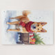 Send festive greetings with this charming Christmas card featuring an Australian Stumpy Tail Cattle Dog beside a rustic wagon filled with wrapped holiday gifts. The soft watercolor style and gentle snowfall create a cozy winter mood perfect for dog lovers and pet parents. With a blank interior ready for your personalized message, this card is ideal for seasonal correspondence, thoughtful gifting, and breed-inspired stationery collections.