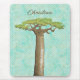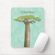 Mousepad verfügt über einen großen Baobab-Baum, bekannt in Afrika und Australien, auf Aqua / Gold Punkte Hintergrund mit Aquarell. Personalisieren mit Namen oder Monogramm