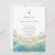 Ces invitations au baptême de plage ont un fond bordé de vagues de l'océan. Utilisez les champs modèle pour ajouter vos détails personnalisés, y compris les noms de parrain. Commandez des cartes imprimées en ligne ou des invitations imprimables. Un choix élégant pour les thèmes côtiers. Pour voir d'autres créations comme celle-ci, visitez www.zazzle.com/dotellabelle Unique aquarelle art et design de Victoria Grigaliunas de Do Tell A Belle.