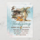 Plage Invitation Thanksgiving sur la plage avec palmiers et sable avec citrouilles et fleurs.