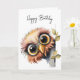 Niedlicher Uhusvogel, der zum Geburtstag um den Baum pinkelt. Der Text ist bearbeitbar.