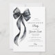 A modern graduation ceremony invitation card with a watercolor black bow. The text details and image can be personalized.