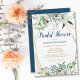 Weich blaue, rosa und weiße bohfarbene Blume in einem doppelgeometrischen Rahmen mit botanischen und beerischen Schnörkeln und die Rückseite der Karte hat eine schöne und reich dunkelblaue Farbe. Passen Sie diese Brautduscheinladung mit Ihren eigenen Farben und Schriftart an oder behielt Sie diese beliebte Typografie so, wie es für Sie ist.