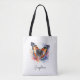 Add a touch of wildlife to your everyday outings with this elegant butterfly tote bag. Featuring a vibrant illustration of a red admiral butterfly, and personalized with a name in script typography, this tote makes a thoughtful gift and a stylish everyday essential. Ideal for grocery shopping, books, work, or meeting friends, the reusable bag combines practicality with an individual touch.