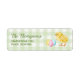 Destei's watercolor baby chick and pastel eggs. The background features a green gingham pattern and there are two personalizable text areas including one for a name and another for the address.