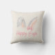 Add a sweet and festive touch to your home décor with this adorable Happy Easter bunny ears pillow featuring a charming watercolor illustration of soft rabbit ears tied with a beautiful pink bow and elegant pink “Happy Easter” lettering.