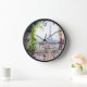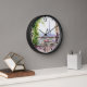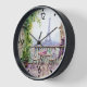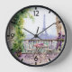 Im Watercolor Eiffel Tower Paris French Cafe Clock wohnen Sie in einem französisch-französischen Café mit Sitzecken in den Farben Paris und Eiffelturm im Hintergrund. Erstellt von Evco Studio www.zazzle.com/store/evcostudio