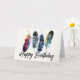 Cette carte d'anniversaire présente des illustrations d'aquarelle de plumes d'oiseaux dans un style boho vibrant avec le message Joyeux anniversaire en écriture sur le devant. L'intérieur de cette carte est prêt à être customisé avec votre propre message.