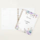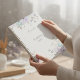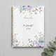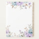 A planner with a dreamy and delicate aesthetic, ideal for lovers of nature and soft colors. The white cover is decorated on the top and bottom edges with elegant watercolor-painted flower garlands. The color palette ranges from lavender purple to powder blue, with sienna and beige leaves adding warmth. In the center of the composition, the name "Amanda" is written in a thin and refined black script, followed by the title "PLANNER 20XX" in a minimalist sans-serif font. The gold spiral binding adds a touch of light, making this organizer a sophisticated and feminine desk accessory.