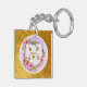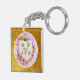Personalized Floral Gold Frame Keychain | Custom Name Watercolor Flower Keyring Gift.