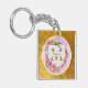 Carry a piece of elegance wherever you go with this stunning personalized floral keychain. This double-sided keyring features a delicate pink watercolor flower wreath set against a soft lavender backdrop, all beautifully encased in a luxurious brushed gold-style frame.